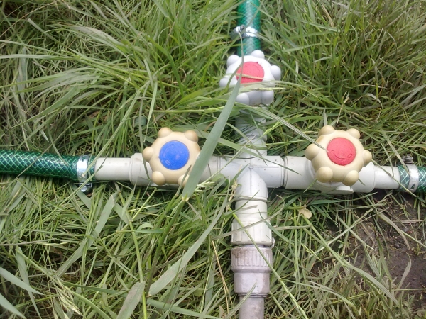 А это техническая сторона вопроса- выстраданный мною тройник для полива- включаешь его как белый человек, ногтти не ломаешь при этом, охватывает почти всё, что в моем ведении и при этом освобождается масса свободного времени(для стойки в позе дачника)