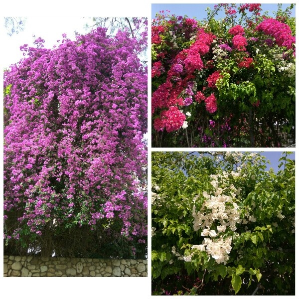 Цветёт бугенвилия различными цветами: розовая, красная, оранжевая, бордовая, фиолетовая, белая.