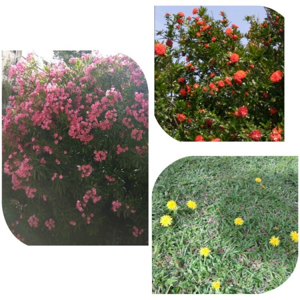 И еще цветёт олеандр и даже одуванчики есть:
