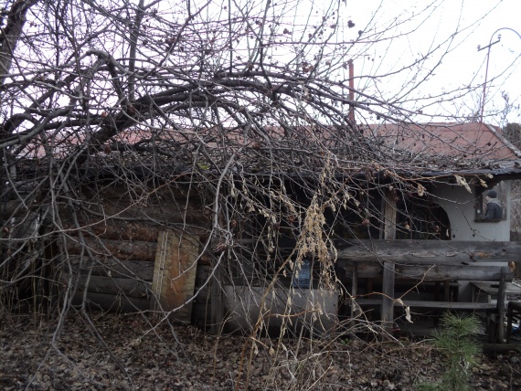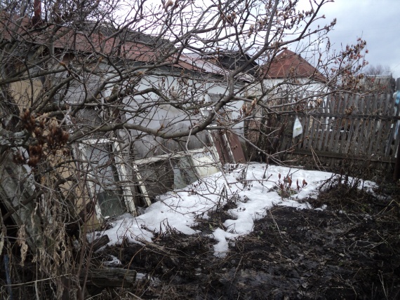 Дерево — большая ранетка, ее решено спилить, так как есть вероятность что ветки добавляют нагрузки на и без того чахлый домик, и через год-два домик будет на слом, там будет гараж, а дальше новый домик, в общем мелкая и полумертвая ранетка никак не вписывается в будущий ландшафт ) Домик внутри выглядит стремненько конечно, ремонт не делался лет 15 и просто там лежал хлам