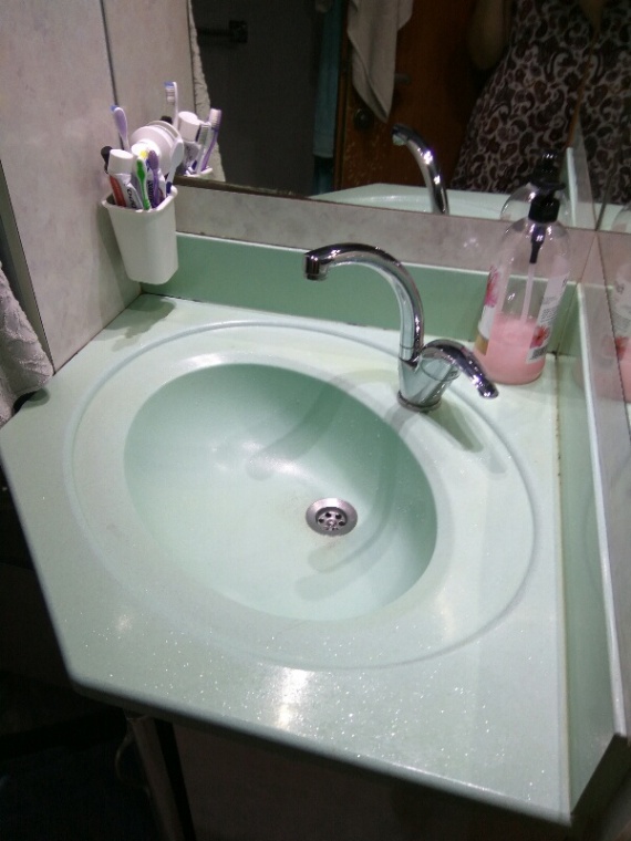 С раковины решила убрать всё лишнее, оставила только мыло для рук, а щётки и паста теперь подвешенны и не стоят на самой раковине.
