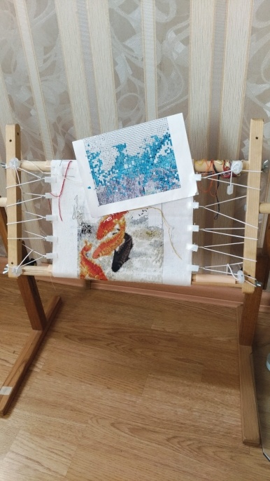 А вот станка у меня аж 2! Мама оставила свой. Забыла в чемодан сложить -) теперь могу отрастить еще 2 руки и тудыть тоже запрягать