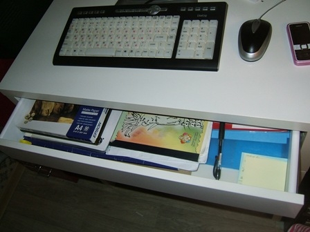 В ящике стола – альбомные листы для рисования, бумага для принтера, листы для заметок и ручка, если вдруг надо будет что-то срочно записать.