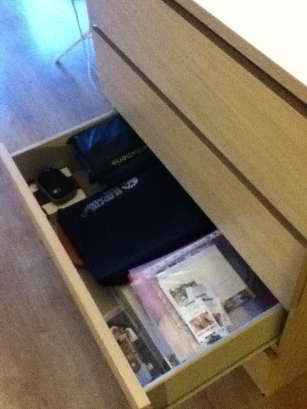 Вот такой у нас был комодик, на него свалили вещи, которые были на обеденном столе, вчера все разобрала — внутри порядка было больше, так просто прошлась, выкинула лишнее оттуда и все.