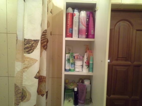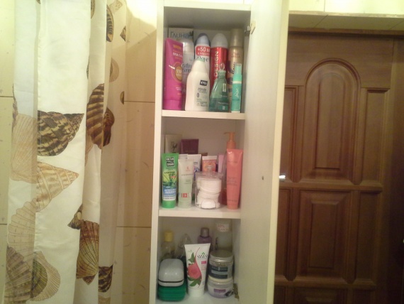 В ванной есть замечательный шкаф-пенал из «Акватории», узкий, вместительный и высокий, практически под потолок, в нижней части которого стиральные порошки и полотенца, а в верхней всё остальное, самое необходимое.Вот он и подвергся ревизии) Ниже фото