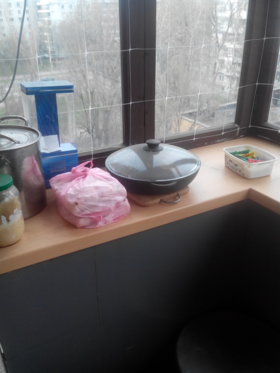 То что планировала не сделала. Увы. Но был дома муж и забрал лишние вещи с балкона в гараж. Что то отложили для дачи. В общем хорошо размусорили балкон. Помыла его и теперь можно не боясь на него заходить. А то вечно на одной ноге. Балкон у меня небольшой и вход с кухни, что меня очень печалит. Я бы хотела, чтоб у меня на кухне было большое окно и перед ним рабочая поверхность. Но такое невозможно. Вот результат: