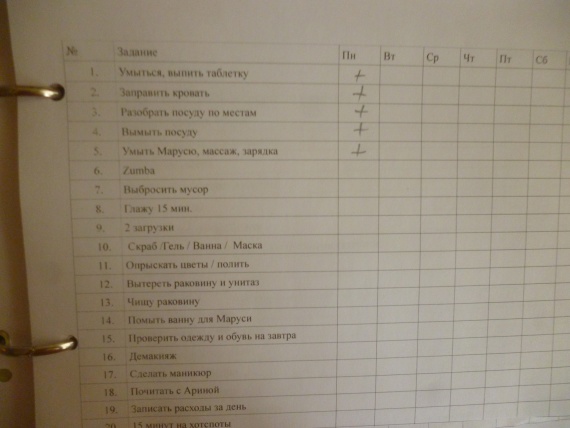 Вот так выгляди малый круг дел (фактически — рутины, которые не делю на утро-день-вечер, а выполняю по мере сил и времени)