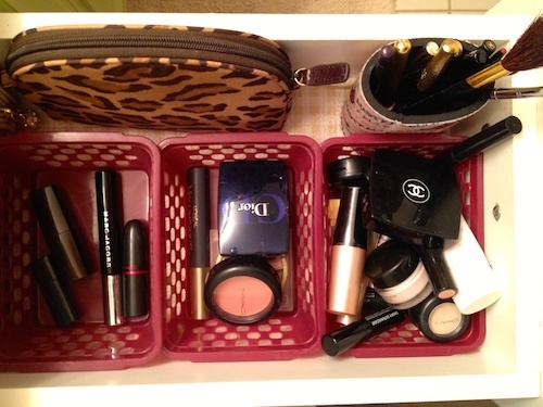 Мелкие пластиковые коробочки использую везде, где есть выдвижные ящики — в том числе и в туалетном столике — они прекрасно справляются с функцией разделителей