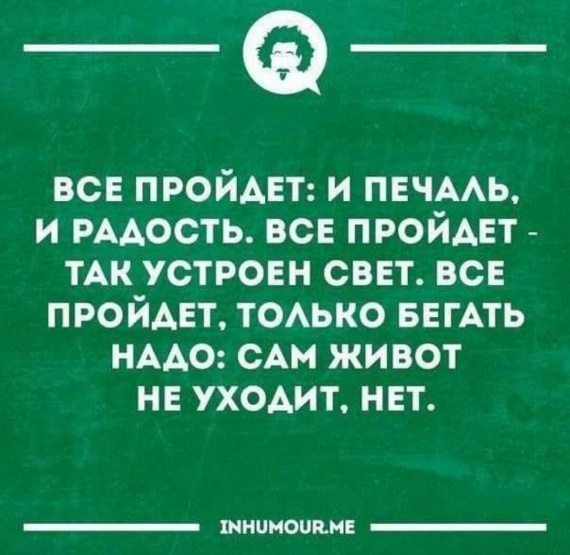 Про мужа тож понравилось. И жизненное. Есть у моей приятельницы сестра, практиковала она походы налево. Мужу донесли. Он орал:«Ты б падшая женщина, я с тобой разведусь, найду себе нормальную.» А она спокойно так, попивая кофе, говорит ему:«Нее, не найдешь. Это ведь у кого какая судьба. Вот у меня первый муж был хороший, и второй тоже будет хороший. А у тебя первая жена -шалава, и вторая тоже будет шалава»:) До сих пор живут, но походы она прекратила;)