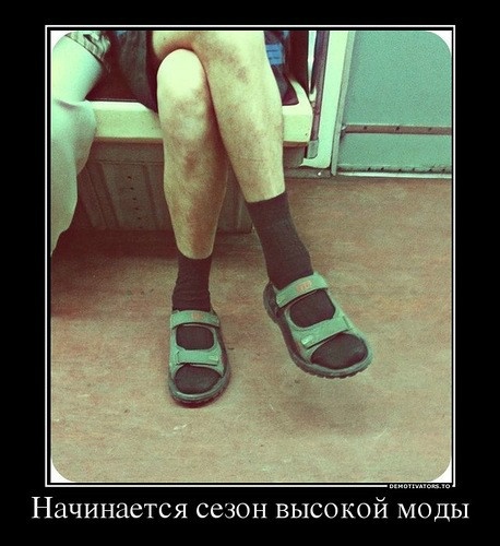 У мужчин в плане одежды есть несколько табу, но строгие. Нельзя носить сандалии с носками, нельзя носить рубашку с коротким рукавом с галстуком (если только Вы не менеджер заведения фаст фуд). Даже вопрос «почему» неуместен. Нельзя!(Э.Хромченко)