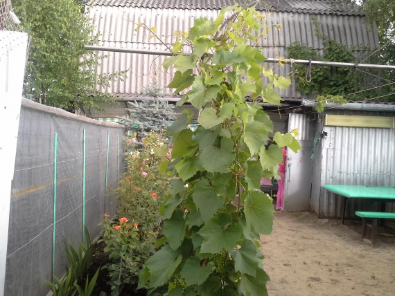 Папа впервые посадил виноград, он уже пополз по арке, и завязей на нем много