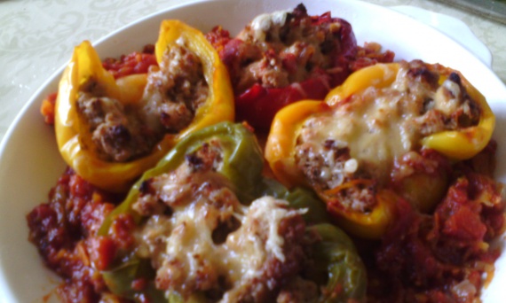 И еще… Любимая Бурда порадовала рецептом фаршированного перца… Рецепт обыкновенный, но подача получается очень нарядная за счет разноцветных перцев и за счет того, что они разрезаются на половинки… Простой нюанс, а так удачно… Так что хвастаюсь фото, начала сразу активно этот рецепт использовать )Перцы до ))
