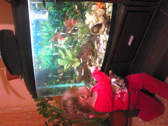 С дочкой рисуем, делаем аппликации, лепим колбаски из пластилина. Недавно были у подруги. У них большой аквариум. Так вот, моя смурфета облепила все стекло маленькими кусочками пластилина, кормила рыбок, наверное. Хорошо, что в воду не покидала :-)