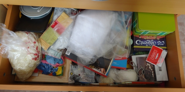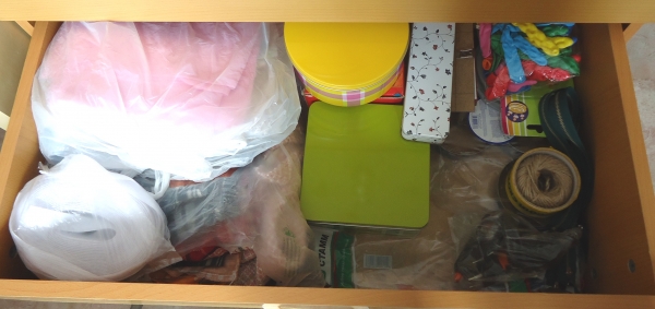 На этой неделе распределила дела так, чтобы один день ничегошеньки по дому не делать, а только валяться и уделять время себе. Получилось у меня два дня плотно загруженных — понедельник и среда, вторник был весь в разъездах. И вот в понедельник я сделала великое дело — разобрала свои рукодельные склады. Это одна коробка и один ящик в комоде.