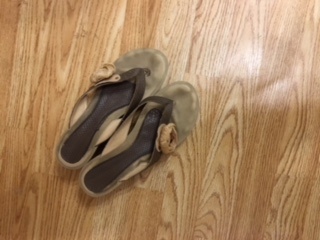 Отдельное фото, сначала оставила их, хотя пролежали все лето, куплены очень давно, надевала несколько раз. Позавчерачера вечером еще раз надела на улицу на пробу, в итоге опять несколько раз подвернула ногу и поняла, что между пальцев натирают, со спокойной совестью отнесла вчера утром на помойку, поставила возле баков, может кто-то возьмет.