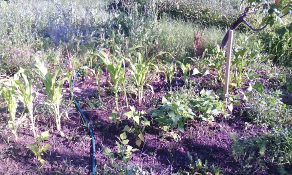 Но утром все таки поехала, потому что обещали приехать мастера и распилить дурацкую вагонетку на металлолом, которая мне уже 10 лет мозолит глаза.В целях заботы о себе решила ничего глобального не делать.Переоделась, взяла свою любимую маленькую тяпочку, скамейку и прошлась по сорнякам в огороде. Огород был залит заранее, земля мягкая и было легко работать. Очнулась в час дня. Т.е. 4 часа уходит на прополку огорода.Слегка подвязала еще помидоры (оказывается это практически бесконечный процесс) и быстро ретиловалась на автобус.Мастера перенесли на завтра.Дождь возможно все же будет. Неопределенность какая то наступила с планами.