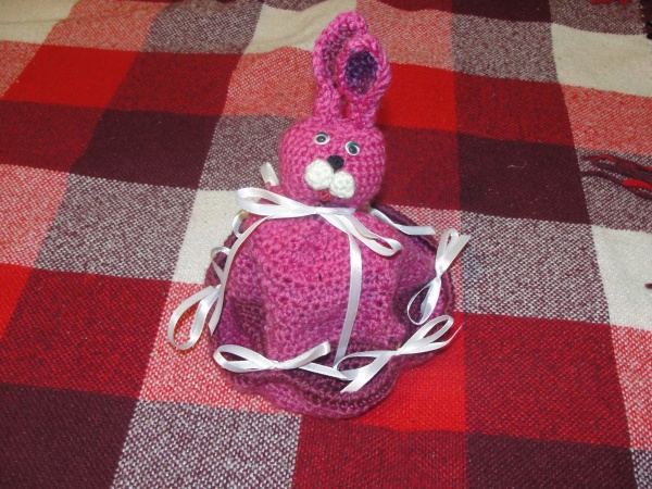 Еще я принимаю участие в платном марафоне по шитью.Буду учиться шить Ксюше платье.Еще я связала с опозданием пасхального зайку с кармашками для яиц