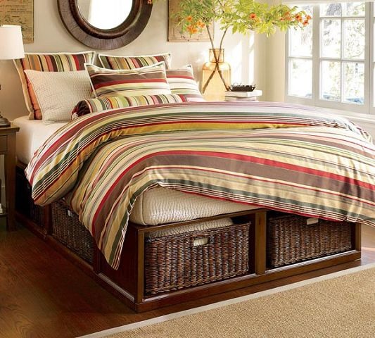 С корзинками все очень красиво, уютно, но как же пыль там будет собираться, особенно под кроватями.