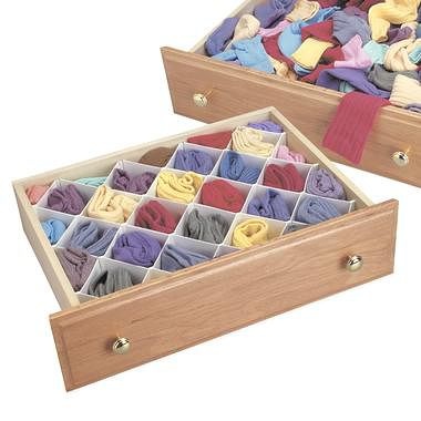 Органайзеры для носков у меня есть. Минус в том, что высохшие носки нужно сразу же сворачивать и складывать. Может привыкну, но пока жутко бесит. А вот пользоваться крайне удобно.