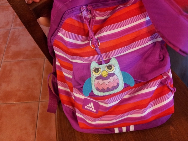 А на прошлой неделе — всё собиралась вам показать — брелок на Руткин школьный рюкзак :-)
