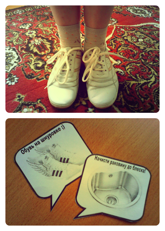 Сегодня обулась в удобные мягкие кеды, вполне удобно ходить по дому. Еще сделала себе веселые напоминалки о раковине и обувке.